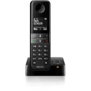 Dieses elegante schnurlose Telefon bietet hochwertige Details und intelligente Funktionen wie einen Anrufbeantworter, ein großes umgekehrtes Display, metallbeschichtete Tasten und natürlich kristallklaren Sound für eine gute Verbindung ˜˜– jederzeit.