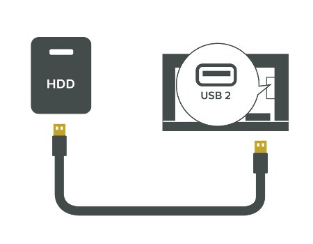 Unten finden Sie Anweisungen, wie Sie Ihre USB-Festplatte mit Ihrem Fernseher verbinden. Weitere Informationen zu dieser Art von Verbindung finden Sie in dieser FAQ.