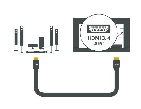 Unten finden Sie Anweisungen, wie Sie Ihr Heimkinosystem über HDMI 3/4 mit Ihrem Fernseher verbinden. Weitere Informationen zu dieser Art von Verbindung finden Sie in dieser FAQ.