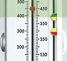 Hvis aflæsningen er under det røde mærke, skal du straks søge læge.
